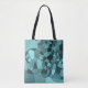 Aquamarine tote with a mosaic design of a sea turtle.