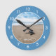 Sea turtle on the beach blue custom wall clock.