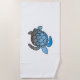 Sea turtle silhouette on summer blue beach waves beach towel