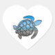 Sea turtle silhouette on summer blue beach waves heart sticker