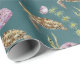 A watercolor painted wrapping paper featuring sea turtles with purple coral and seaweed against a deep green sea ombre background.