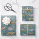 A watercolor painted wrapping paper featuring a sea turtle, seaweed and purple coral underwater pattern against an ombre deep sea green background.