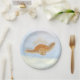 Brown Sea Turtle swimming near the sandy bottom of the ocean, with summer sunlight filtering through the clear, blue water above. Playful design with a warm pastel, tropical, sandy, beach theme. Bring out the swimsuits and snorkels.