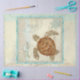 VERTICAL FORMAT "Beach Sea Turtle Watercolor Ephemera Script Decoupage Art for decorating furniture or gift wrapping." This artwork was painted in watercolor by internationally licensed artist, Audrey Jeanne Roberts, copyright.