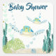 This beach themed baby shower sticker design features a mum and baby sea turtle. They are swimming among hearts and sea life.