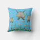 This throw pillow features an original colourful illustration of three friendly sea turtles swimming among tropical fish and lots of bubbles. Personalise it with your initial. On the back there is a complimentary illustration of the turtles swimming away. A perfect edition to your coastal home decor. Original artwork. Copyright Leah Wiedemer