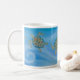 Classic ceramic mug featuring painted sea turtles in tumbling waves. Original artwork by Barbara J.C. Musch.