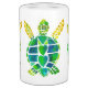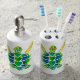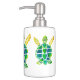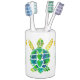 Bothe the soap dispenser and the toothbrush holder are a nice, generous size. They are good quality ceramic with bright, vivid designs. the printing was perfect, exactly as shown on my monitor