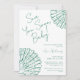 These simple, minimalist baby shower invitations are perfect for ocean-themed celebrations! They feature your custom text in simple typography and stylish handwritten script for a catchy marine title: Sea you soon, baby! The simple design is adorned with clam shells, which lend a nautical, coastal feel to the otherwise neutral invitation, perfect for a baby boy or a baby girl. It features a natural, soft, marine blue (light cyan blue with green undertones) text on a white background. The reverse repeats the marine blue theme. Create your own by clicking on the ´´Personalize´´ button.