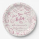 Sea you soon seashells beach girls baby shower monogrammed paper plates. Pink preppy seashells baby shower personalized paper plates, beach baby shower party plates, summer baby shower custom party plates, hand drawn doodle sketch seashells baby shower personalized table decor, hand writing vintage baby shower paper plates