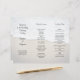 Sea coast wedding program template to fold into thirds. The background is beach sand with white surf. The front of the program can accommodate first names or full names of the bride and groom. Black text templates on all three sections are easy to customise with ceremony information. Title, names and headings are in elegant script font. The paper will need to be folded accordion style after purchase, and double check all text as no one will proofread your wording. The back side of this paper also contains the sea coast image.