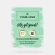 Acrylic let's get social sign with your logo and QR code printed on seafoam green printed paint hastily brushed over the acrylic surface with faux gold foil details your hashtags and your social media handle. Social media promotional sign with black fonts and seafoam green paint strokes printed on an acrylic background personalised with your QR code and social media handle so your clients and customers can easily access your social media as well as your business logo. Light cool green acrylic social media sign for your salon or small business for promotional purposes to help your customers and clients find you online by scanning your QR code.