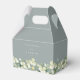 Elegant soft blue-green winter wedding favour boxes featuring a border of hand painted snowberries and eucalyptus. All text is fully editable so you can easily change the font style/colour/size and delete or move text. Coordinating items available. Please note the box size before ordering.