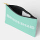 Solid seafoam colour, small style, zippered cosmetic bag for your wedding bridesmaid that features the word, BRIDESMAID in large, modern typography on one side of bag. Perfect as a travel accessory pouch to hold makeup, perfume, and jewellery. You may personalise by adding bridesmaid name if desired to pouch. Available in many, popular bridesmaid wedding colour schemes.