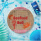You will love this seafood boil with shrimp, crawfish and crab on red and white gingham textures and brown burlap.