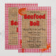 You will love this red and white gingham with brown burlap and seafood like, crab, shrimp and crawfish.
