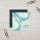 Elegant watercolor business cards feature geode or agate slice illustrations in pale seaglass green tones. Cards reverse to solid dark navy blue with white lettering. Includes three social media icons and a field for your username.