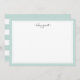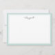 Our chic personalised stationery flat cards have a pastel seaglass green border with your name or choice of personalisation gracing the top in charcoal grey modern script lettering. Cards reverse to horizontal mint and white stripes.