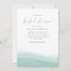 Elegant coastal bridal shower invitation features a sheer turquoise aqua watercolor gradient along the bottom with a graceful curve that evokes the ebb and flow of the sea. Your bridal shower details appear in minimalist classic lettering with handwritten script accents.