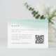 Designed to coordinate with our Seaglass Tides wedding invitation, this simple and chic wedding response card features a soft wash of pastel mist green watercolor with fields for your RSVP date and instructions, website, and a customisable QR code.