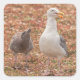 A western gull and its chick stand on a beach covered in small, red and white flowers at Channel Islands National Park, California.
