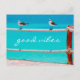 There’s “good vibes” all around whenever you send this colourful, photography postcard. Happy, white and grey seagulls relax on a rope fence set against the vibrant, turquoise ocean. Makes a great gift for someone special!