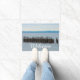 Welcome doormat that can be customised featuring a photo of seagulls sitting on an old dock / walkway along Lake Superior from Whitefish Point in Michigan.