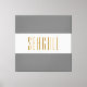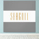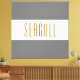This fun seaside design features a wide white horizontal centre stripe with tall, golden brown SEAGULL text typography that can be personalised. The wide top and bottom stripes are medium grey.
