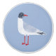 A sassy Black Headed Gull seagull standing by the blue ocean. Perfect for those who love cheeky birds and being by the coast. Original art by Nic Squirrell. Ideal for your boat or beach house.