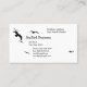 This business card is decorated with black silhouettes of flying seagulls. Most of the seagulls are on the left edge and heading towards you and a bit to the right. One is flying off the bottom right corner. There is room for all of your contact information on the front of the card. Good for a business with a connection to the outdoors, especially the ocean or beach. Some possibilities could be, tourist shops, surf shops, fishing guides, or boat rentals.