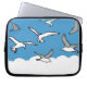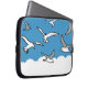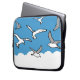 Bag for a birder. A flock of birds are flying high in the sky. Illustration shows seagulls in the air. Gift laptop sleeve for birdwatcher or ornithologist maybe.