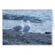 A pair of seagulls look like they're kissing on a rocky beach next to the ocean's waves. This is an original photograph taken by me on the Sunshine Coast of British Columbia, Canada.
