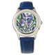 Wonderful fun blue seahorses abstract original art design wristwatch makes a fun unique gift. Can also add custom text and change background colour when ordering.