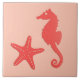 Seahorse and starfish - shades of coral orange tile