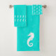 Seahorse Aqua Teal blue and white Bath Towel Set