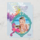 Impress your guests with this delightful summer-theme invitation. The decorative frame has a pink seahorse trim and a blue background with colourful bubbles. Just add your favourite photo.