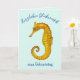 Cute Seahorse Happy Birthday card featuring a hand-painted watercolor seahorse and the inside message "Wishing you the happiest of birthdays."