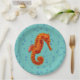 This cute orange seahorse is great for kids events, pool and beach parties or nautical themes. Add a name and change the background colour in the custom section.
