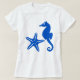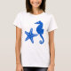 Mixed media digital rendition of a seahorse and starfish in deep cobalt blue