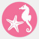 Seahorse & Starfish, Fuchsia Pink and White Classic Round Sticker