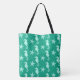 Mixed media digital rendition of a seahorse and starfish in light seafoam green against a rich, underwater teal background print bag