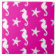 Mixed media digital rendition of a seahorse and starfish against a deep fuchsia pink background
