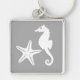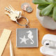 Seahorse & starfish - white on silver grey key ring