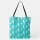 Seahorse & starfish - white on turquoise tote bag