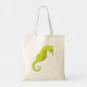 A watercolor of a vibrant yellow seahorse adorns this tote bag!