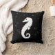 part of the ocean themed decor SEAHORSE WHITE on black pillow on one side