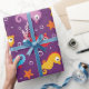 Cute, little, colourful seahorses and starfishes swimming in the Ocean.