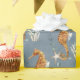 A nautical wrapping paper featuring watercolor painted seahorses with coral and seaweed against a deep dusty blue ombre background.