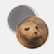 Round magnet with a close up photo of a seal. Customisable.