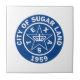 This design features the civic seal of Sugar Land, which is a city in Texas, USA. Sugar Land is the largest city in Fort Bend County, Texas. Sugar Land is located about 19 miles southwest of downtown Houston, and it is currently one of the fastest growing cities in Texas.